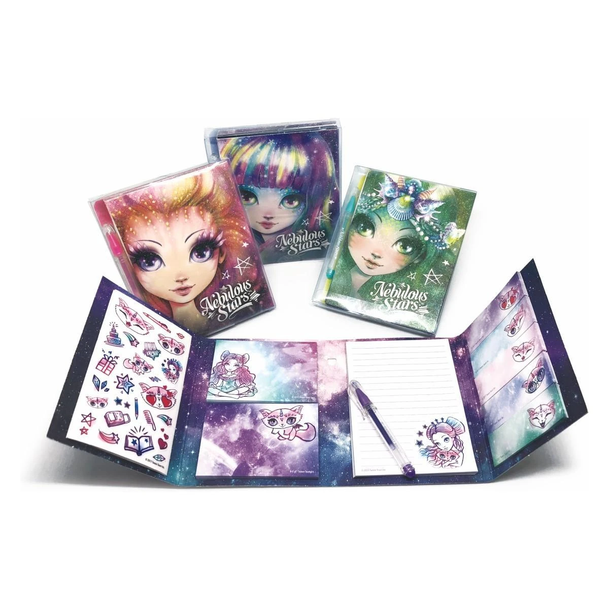 Descoperă lumea magică a universului Nebulous Stars cu acest set adorabil de papetărie! Ideal pentru a trimite gânduri pline de farmec sau pentru a nota dorințele și visele personale. Setul conține toate elementele necesare pentru a crea urări cu adevărat speciale: stilou cu gel, autocolante colorate și hârtii de notițe magice, toate inspirate din stilul unic al personajelor Nebulous Stars.