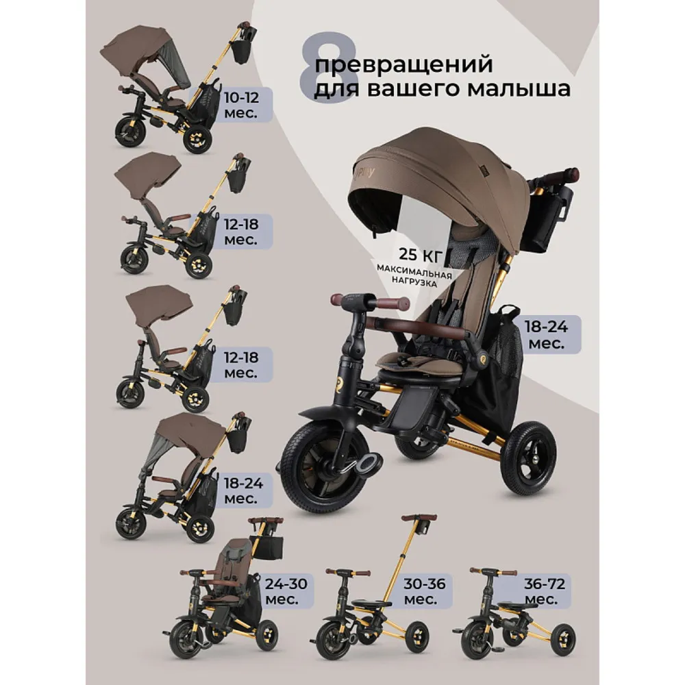 QPlay Nova Deluxe este o versiune îmbunătățită a popularului model de tricicletă pliabilă Nova de la QPlay. Acest model oferă un scaun mai spațios și mai confortabil, dimensiuni mai mari și funcționalități suplimentare, păstrând în același timp sistemul practic de pliere compactă. Este ideală pentru plimbări zilnice și se adaptează ușor nevoilor copilului și părinților.
