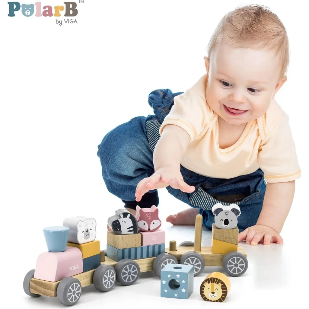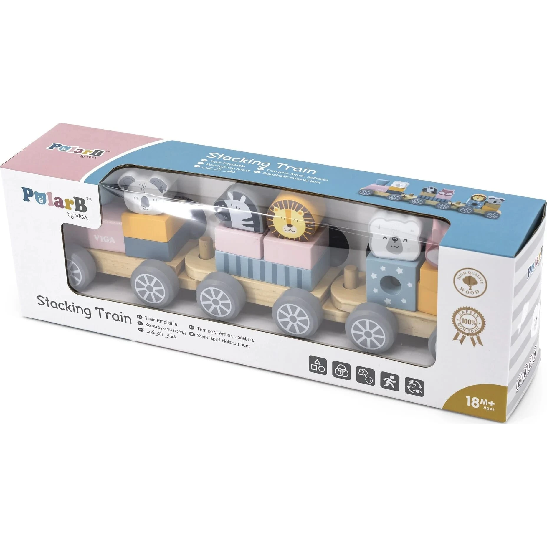 - В состав поезда входят 3 вагона и 15 блоков в 11 цветах и 11 формах, прочно собранных из массивного дерева.