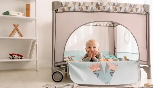 - Продуваемые и красочные стенки манежа позволяют наблюдать за ребенком и обеспечивать эффективную циркуляцию воздуха.