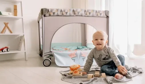 - Конструкция манежа оснащена системой LockGuard, которая предотвращает самопроизвольное складывание модели.
