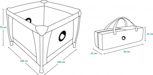 - Функциональность: быстрое складывание и раскладывание; боковой вход на молнии; прозрачная сетка; компактный размер после складывания; защита от случайного складывания; 2 колеса с тормозом для легкого передвижения; съемный матрас