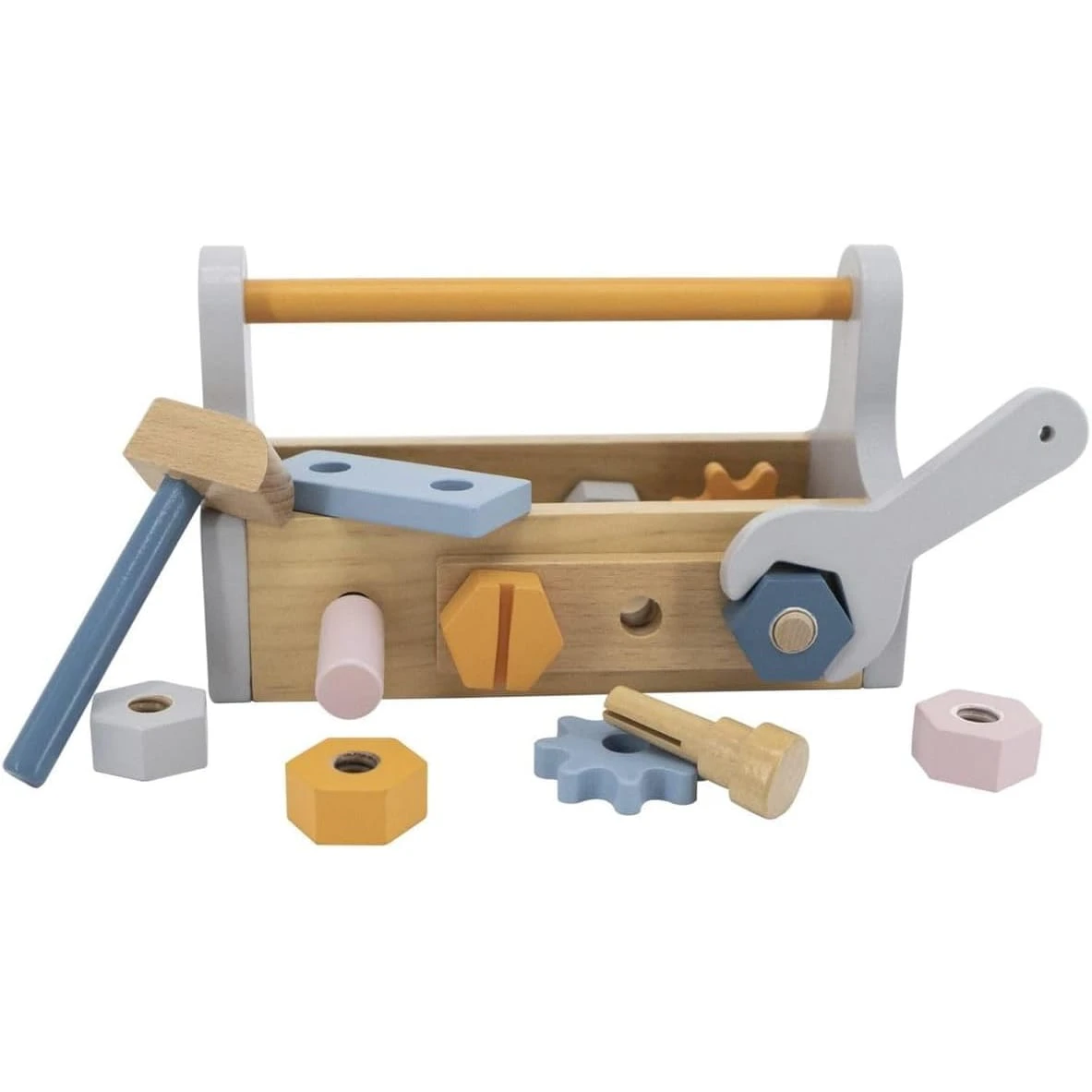 - Набор инструментов включает молоток, гаечный ключ, отвертку, 4 пары болтов и гаек, штифт, 2 шестерни и панели с 2 отверстиями. Отлично подходит для ролевой игры.