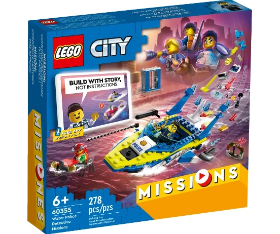 - Практические цифровые приключенческие истории – познакомьте детей с увлекательной интерактивной игрой LEGO® с этим игровым набором LEGO City Water Police Detective Missions