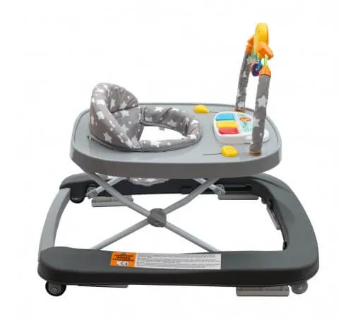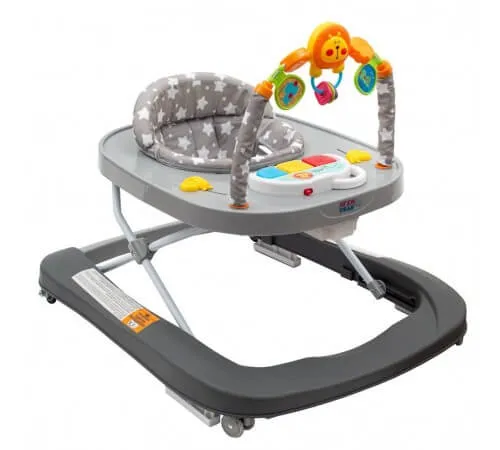 Ходунки New Baby в современных цветах с четырьмя силиконовыми колесиками и подушками безопасности помогают ребенку сохранять устойчивость при ходьбе и в то же время приносят мир веселья благодаря встроенному цветному пианино и арке с веселыми игрушками. Пианино состоит из 3-х клавиш и является съемным. Арка состоит из вращающихся игрушек с животными мотивами и бусинами. Ходунки регулируются в нескольких положениях, имеют очень удобный чехол, который можно стирать, и усиленный сзади.