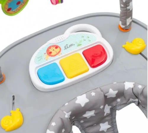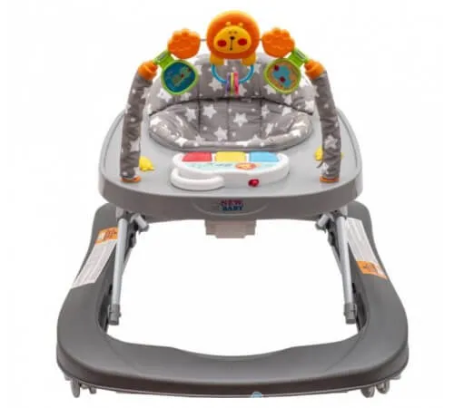 Ходунки New Baby в современных цветах с четырьмя силиконовыми колесиками и подушками безопасности помогают ребенку сохранять устойчивость при ходьбе и в то же время приносят мир веселья благодаря встроенному цветному пианино и арке с веселыми игрушками. Пианино состоит из 3-х клавиш и является съемным. Арка состоит из вращающихся игрушек с животными мотивами и бусинами. Ходунки регулируются в нескольких положениях, имеют очень удобный чехол, который можно стирать, и усиленный сзади.