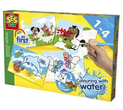 Волшебство с водой и краской без беспорядка. С этим уникальным набором от SES можно. Раскрасьте открытку влажной кистью и наблюдайте, как оживает цветная картинка. Кисть безопасна в использовании, потому что волосы не выпадают. После высыхания можно использовать повторно.
