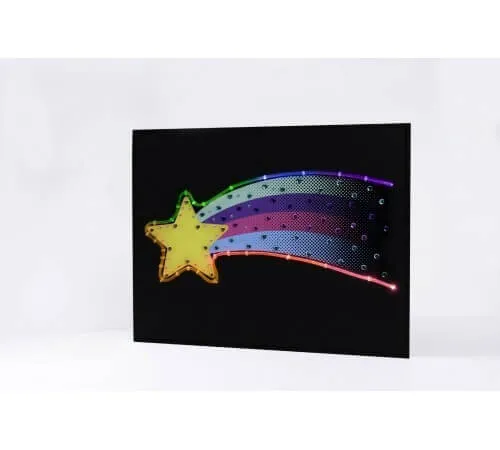 Набор Make it Real поставляется со всем необходимым для создания двух неоновых светящихся досок. Создай свой дизайн, укрась блестками, прикрепи к доске - затем нажми переключатель и наблюдай, как твоё творение загорается. В наборе два светящихся неоновых дизайна.