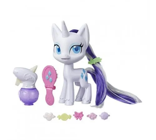 Окунитесь в магию с Рарити! Эта фигурка Рарити с волшебной гривой представляет собой белую игрушку пони с волосами, которые растут и изменяют цвет. Расчешите ее гриву и хвост щеткой, чтобы волосы начали расти. Затем наполните флакончик ледяной водой и распылите на волосы, чтобы белые пряди стали синими. Чрезвычайно длинные волосы Рарити закреплены с корнями внутри головы. Они мягкие и легко поддаются расчесыванию и укладке. В комплекте с фигуркой также идут 10 аксессуаров-сюрпризов для игры и создания стильных причесок.