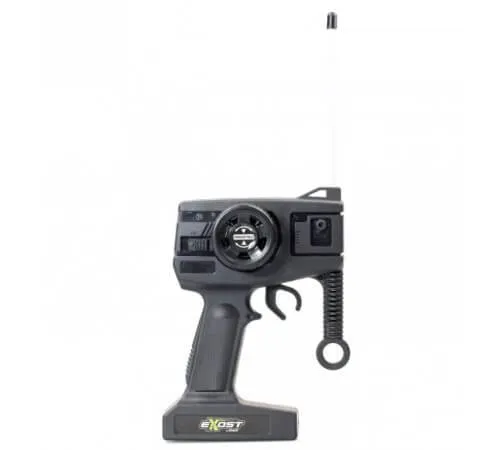 - Машинка легко покоряет любые неровности благодаря амортизаторам и вездеходным колёсам, а управлять ей удобно с помощью пульта из комплекта, напоминающего пистолет.