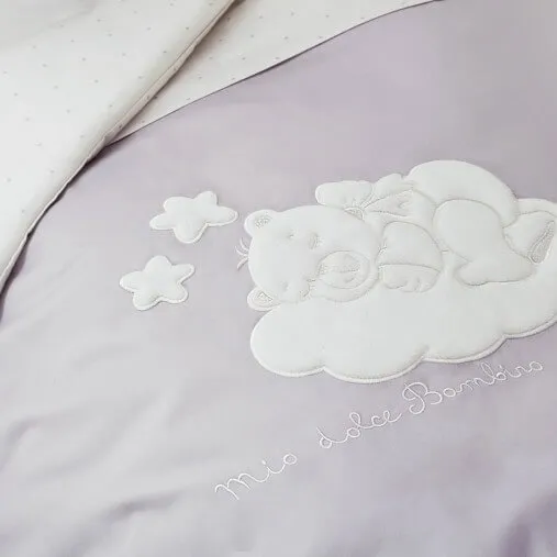 Дизайн модели Бамбино окружит вашего малыша теплом семейного уюта. Природные оттенки и спокойные тона элитного сатина убаюкивают перед сном, а стильные и абсолютно натуральные плюшевые игрушки и объемная велюровая аппликация займут маленького первооткрывателя после пробуждения.