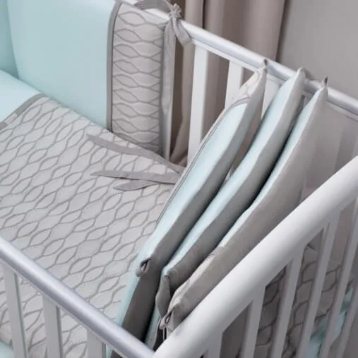 Каждая расцветка модели Elfetto обладает своим характером, становясь изюминкой детской спальни. Современная мятная или воздушная молочная с цветочным принтом— что бы вы ни выбрали, практичность комплекта вас обязательно порадует. Одна из его особенностей — универсальный полуборт, который частично закрывает кроватку и подразумевает различные варианты расположения.