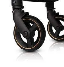 Колеса оснащены резиновыми шинами с круглогодичным протектором, обеспечивающим отличное сцепление на снегу, траве или лесных тропинках. Вы также можете использовать дополнительные резиновые колеса снаружи и оригинальные колеса дома, поддерживая чистоту.