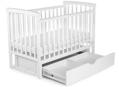 Каждый элемент предназначен для удобства родителей и малыша. Бортик с механизмом опускания позволяет обеспечить комфортный доступ к ребенку, утонченность пропорций придает кроватке хрупкость.