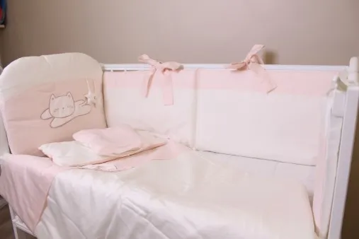 Комплект в кроватку 8 предметов PernaMea Satin Pisica Roz