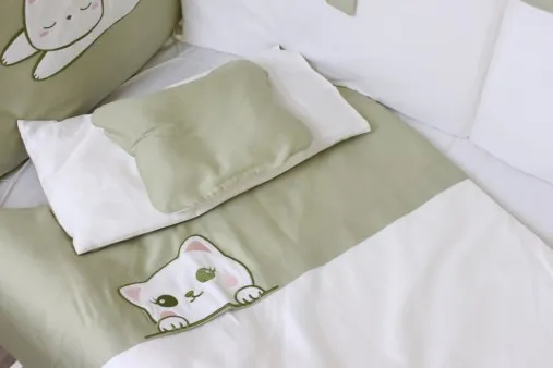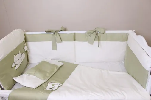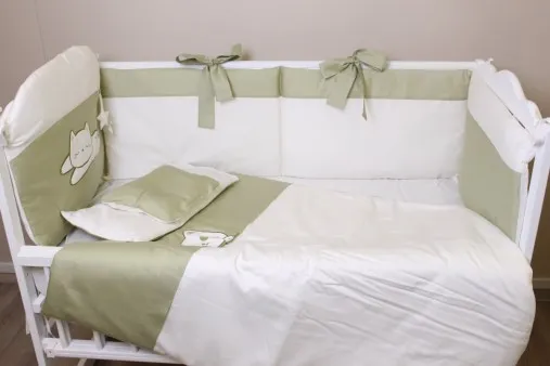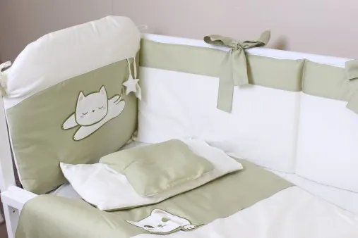 Комплект в кроватку 8 предметов PernaMea Satin Pisica Oliva