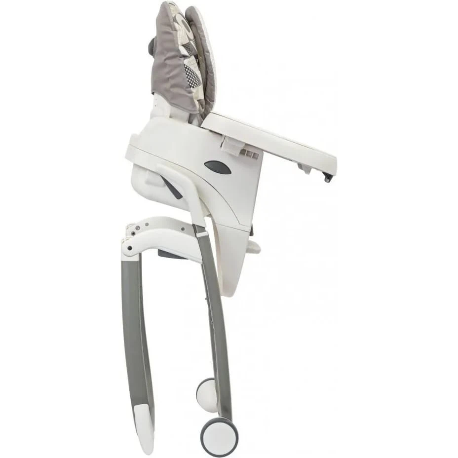 Graco® DuoDiner® DLX можно легко транспортировать из одной комнаты в другую благодаря специальным колесам с системой защиты от царапин. Каркас стула имеет удобную систему складывания, благодаря чему он максимально компактен и его легко хранить, когда он не используется.