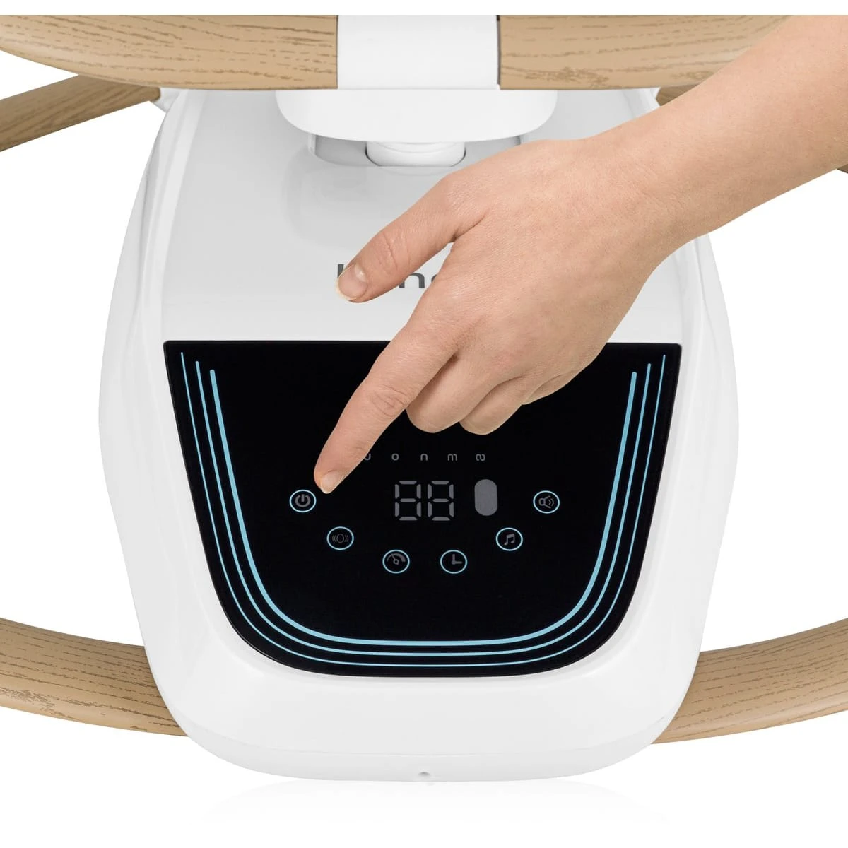 Качалкой можно управлять дистанционно с помощью прилагаемого пульта или напрямую через встроенную сенсорную панель.