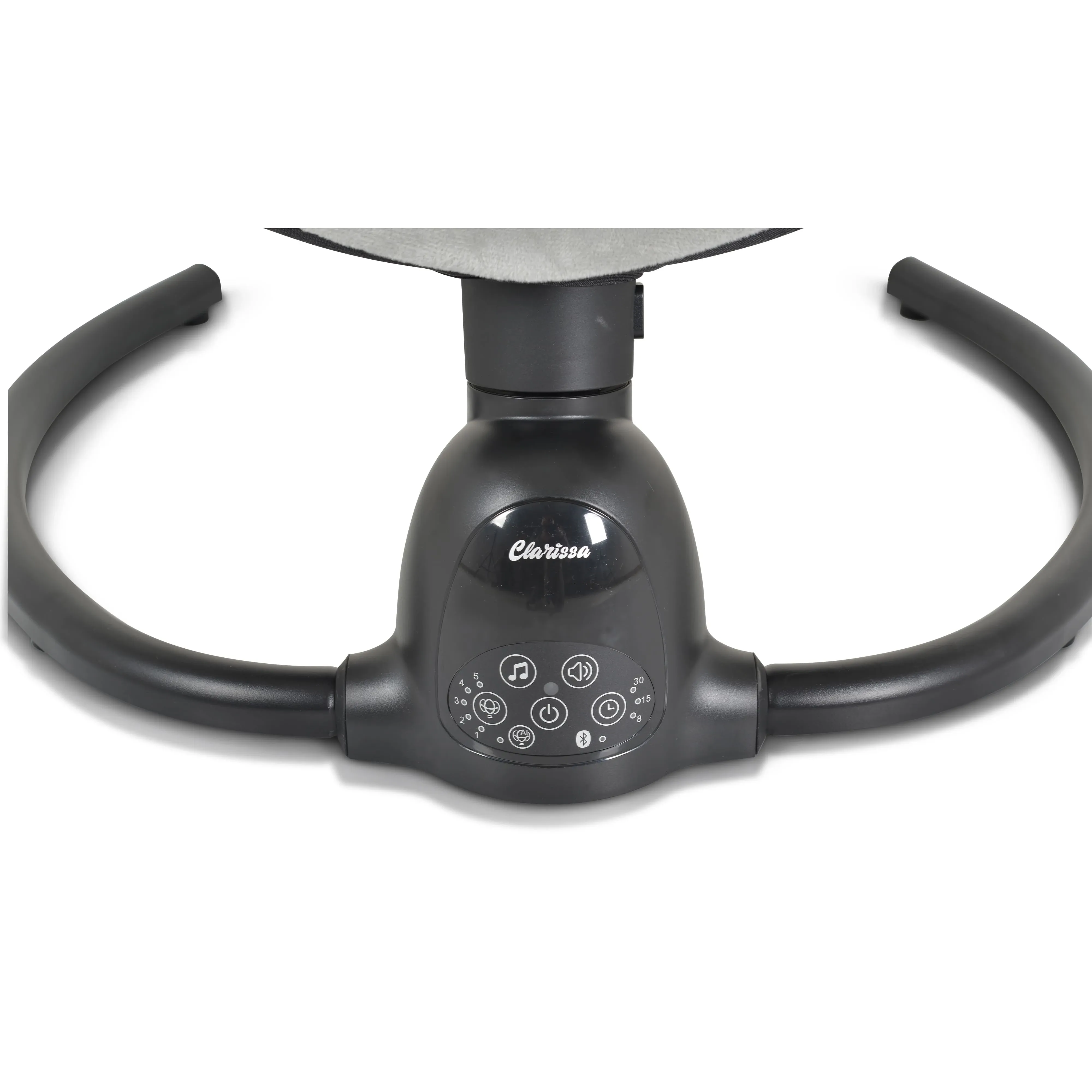 Электрическая качалка Clarissa имеет стильный и изысканный дизайн, подходящий для любого интерьера. Скорости качания, из которых можно выбирать, - 5. В качалке встроен датчик движения, который может автоматически запустить качание при движении ребенка. С помощью функции Bluetooth вы можете воспроизводить музыку по вашему желанию, если не хотите использовать доступные 10 мелодий. Качалка работает только с адаптером длиной кабеля 5 м (включен в комплект). Ее можно управлять сенсорным экраном механизма или с помощью пульта дистанционного управления. По вашему желанию можно воспользоваться таймером с опцией на 8, 15 и 30 минут. Выбрав одну из этих возможностей, качание останавливается после определенного интервала времени. Пятиточечный предохранительный ремень обеспечит безопасность ребенка. Продукт имеет козырек с сеткой против насекомых и 2 плюшевые игрушки. Для комфорта малыша в комплект входит мягкая подушечка. Обивка можно легко снять для стирки. Качалку можно быстро и легко разобрать взрослому одним движением. Кроме того, ее крайне легкая конструкция делает ее удобной для переноски в другое помещение или в путешествие.