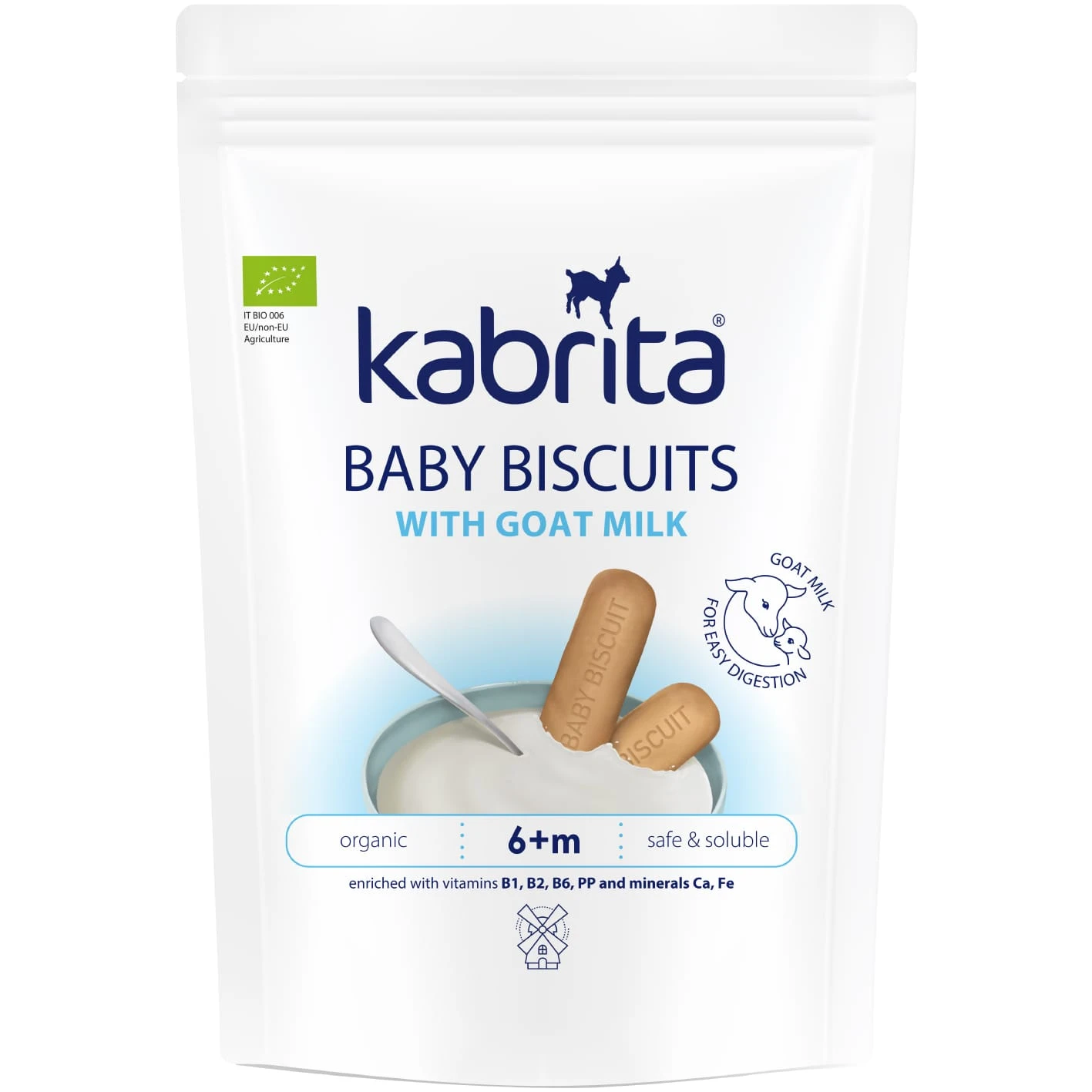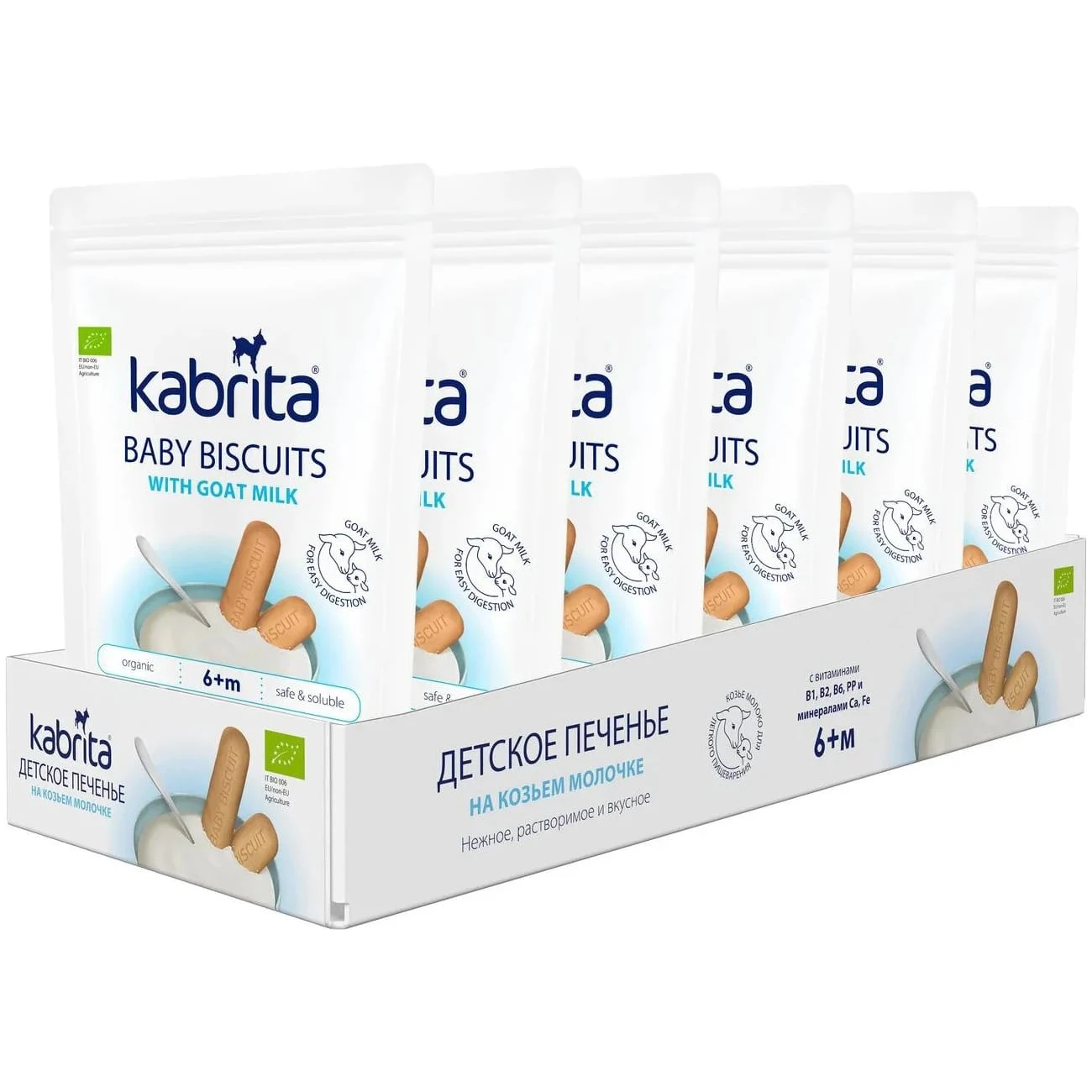 Детское печенье Kabrita - это вкусное и нежное растворяемое печенье на козьем молоке. Пшеничная мука тончайшего помола, фермерское козье молоко, тростниковый сахар, витамины и минеральные вещества, а также технология бережного выпечки делают печенье очень нежным и полезным. Печенье станет любимым перекусом малыша – его удобно держать в маленькой ручке, а можно развести в молочной смеси, соке или чае. Первое печенье – новый этап в жизни малыша, который учится самостоятельно есть более твердую пищу.