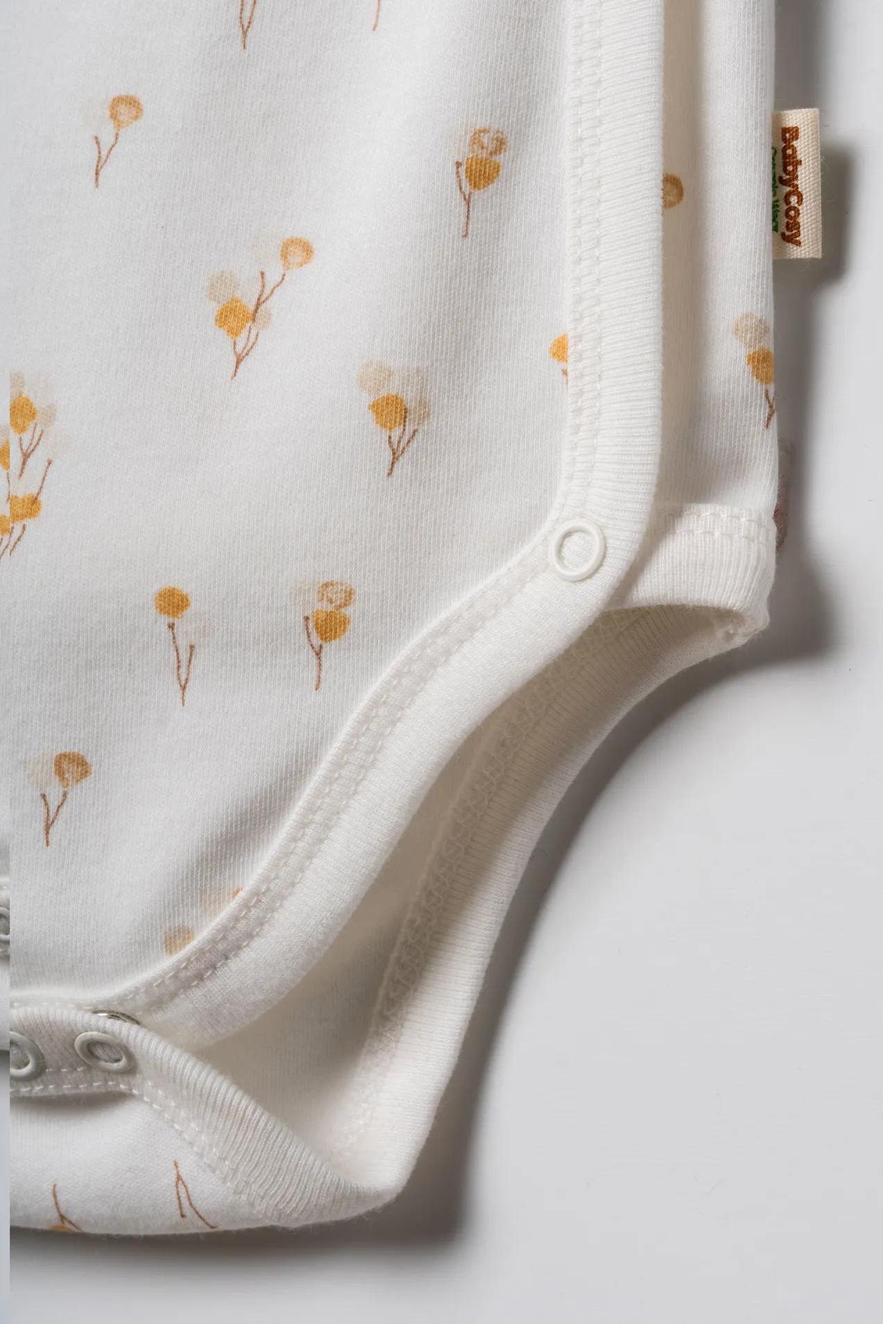 Набор боди BabyCosy Ivory & Ecru выполнен в стиле кимоно и обеспечивает максимальный комфорт для вашего малыша. Боди застегиваются спереди и на кнопки, что облегчает процесс одевания и переодевания. Оба боди выполнены в цвете айвори: один украшен милым медвежонком, а второй — цветочным принтом в оттенках оранжевого и бежевого.