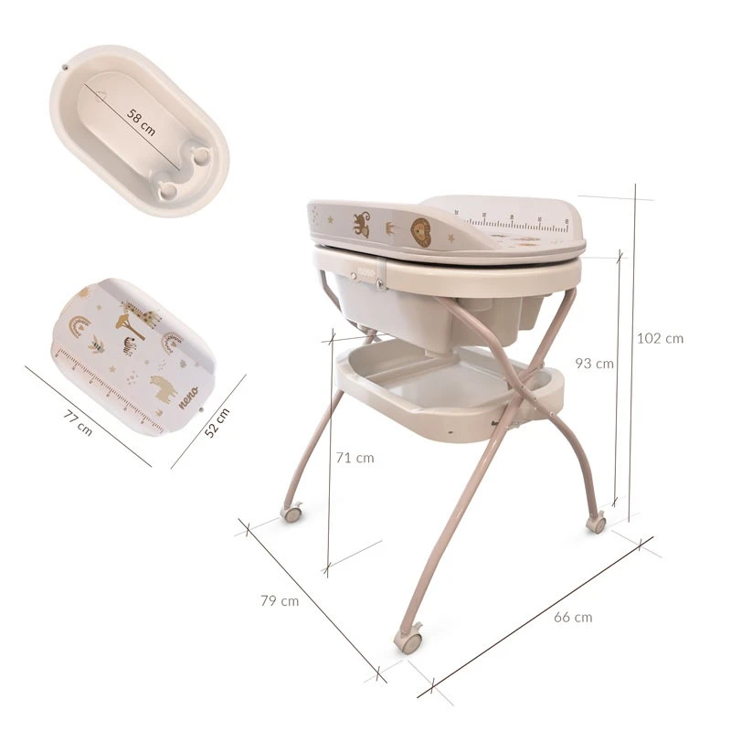 Ванночка с подставкой и пеленальный столик Neno Breza Beige, 58 см