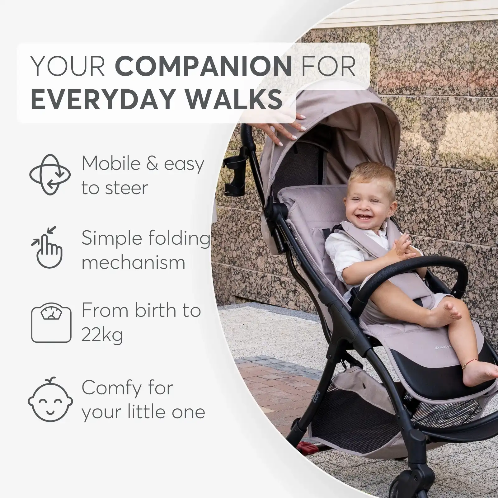 KikkaBoo Cloe — это идеальный выбор для современных родителей: лёгкая, стильная, удобная и безопасная коляска, созданная для комфортных прогулок и путешествий с ребёнком.