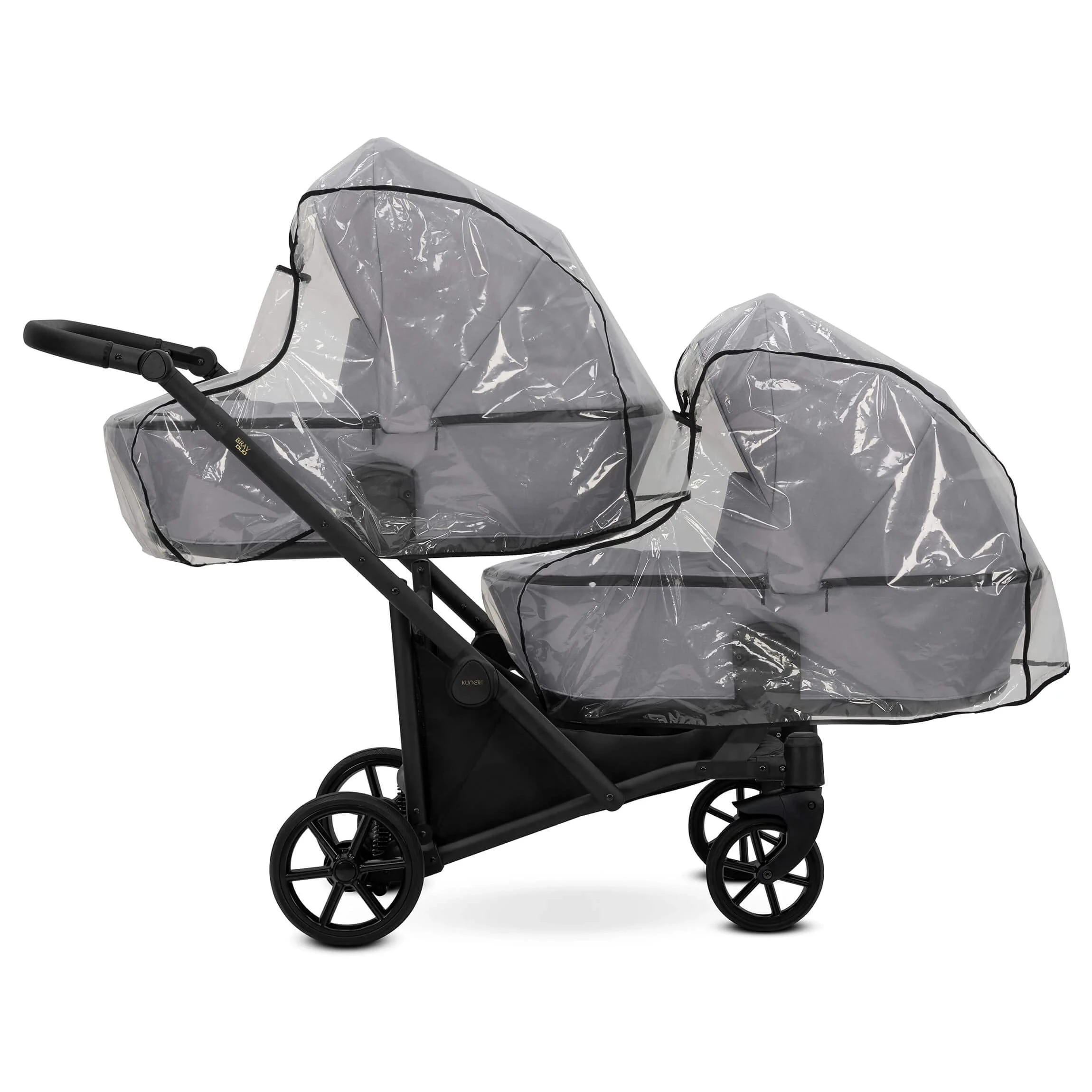 - Регулируемая подножка. Регулируемые подножки удлиняют сиденье, повышая комфорт во время сна. Утепленный чехол для ног эффективно защищает детей в холодные дни, а вентиляционные окна в капюшонах обеспечивают достаточную циркуляцию воздуха, поддерживая оптимальную температуру для обоих малышей.