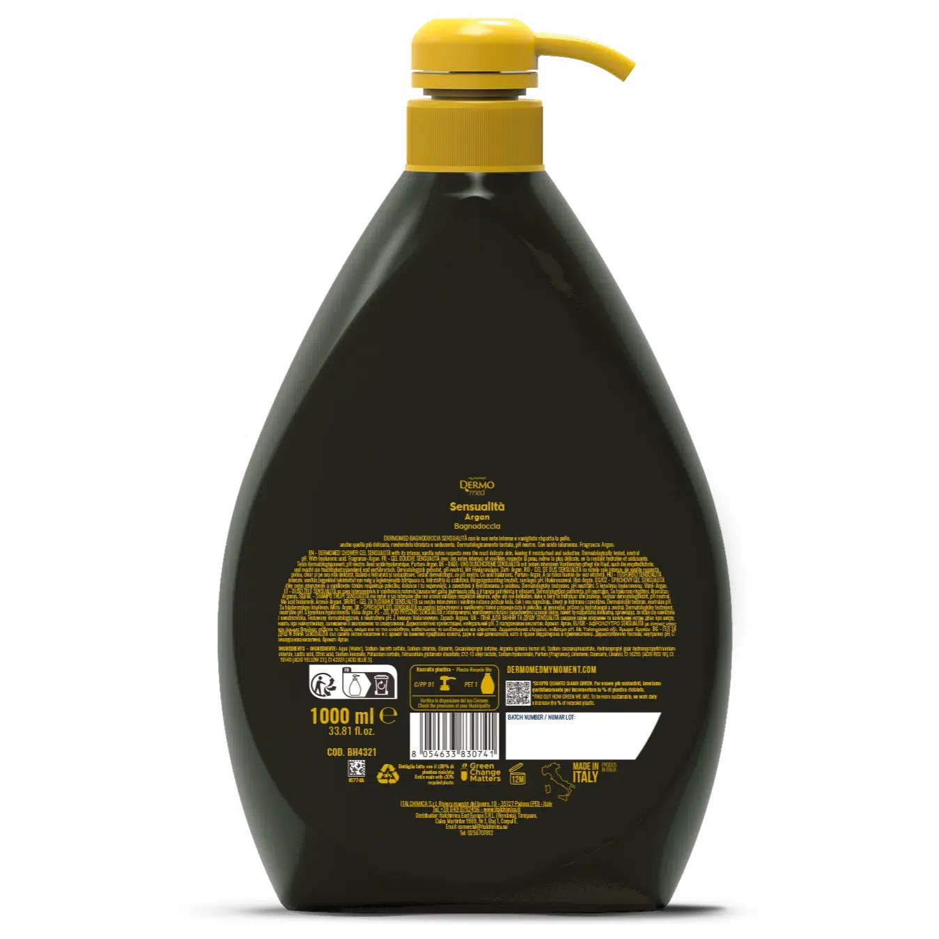 Гель для душа Dermomed Соблазнительный с аргановым маслом содержит гиалуроновую кислоту и глицерин с смягчающими, увлажняющими и восстанавливающими свойствами для дермы.
