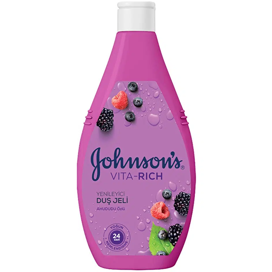 - Восстанавливающий гель для душа Vita-Rich с экстрактом малины от Johnson's помогает увлажнять и восстанавливать кожу благодаря своему освежающему аромату и богатой пенящейся формуле.