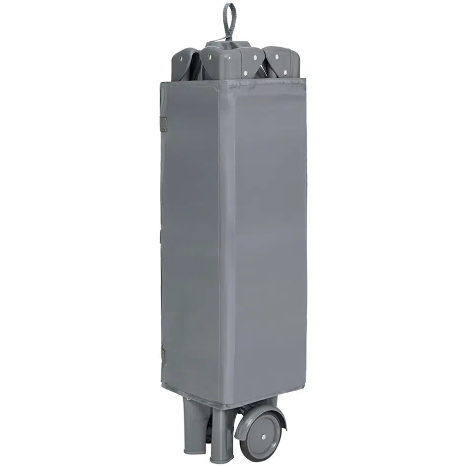 - Лёгкая мобильность – Оснащена двумя колёсами с тормозами для лёгкого перемещения и быстро складывается в компактный размер, который удобно помещается в прилагаемую сумку для транспортировки.