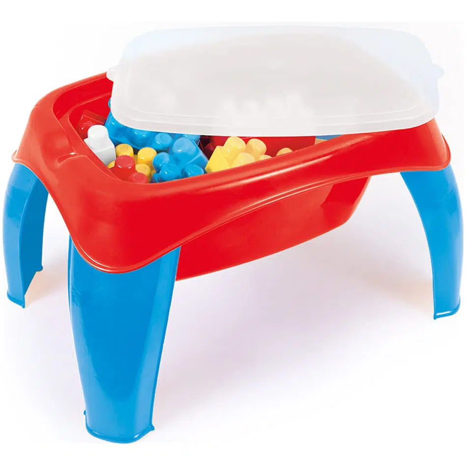 Столик для занятий с крупными строительными деталями, специально разработанный для маленьких детей, обеспечивает устойчивое и безопасное пространство для игр. Стол оснащён съёмной крышкой, а внутри можно хранить входящие в комплект строительные элементы.