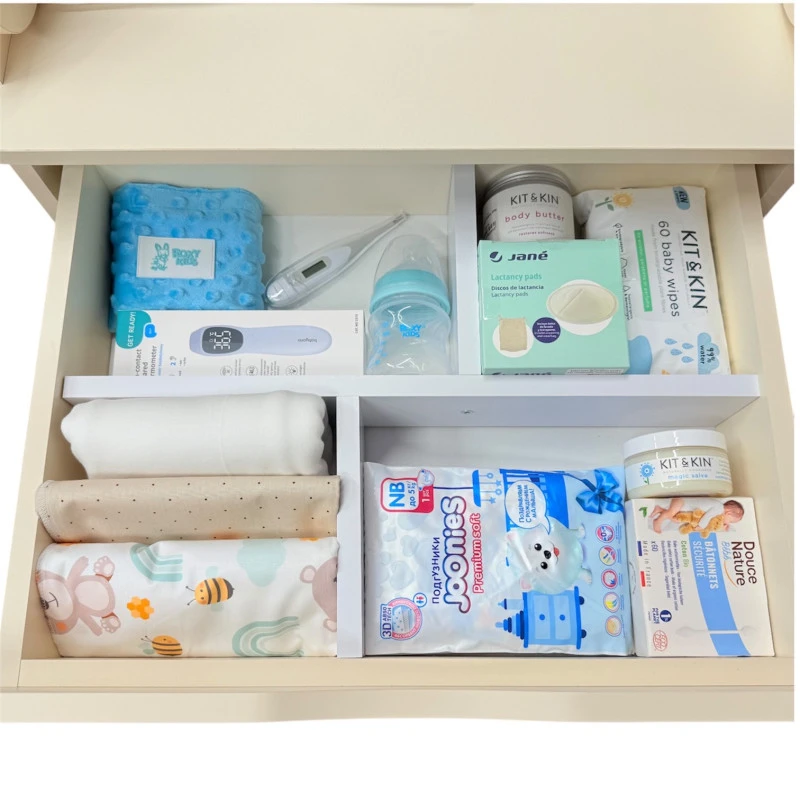 Благодаря продуманной конструкции и прочным материалам, органайзер сохраняет форму, легко очищается и идеально подходит для ежедневного использования. Он делает хранение более структурированным и экономит время при уходе за ребёнком.