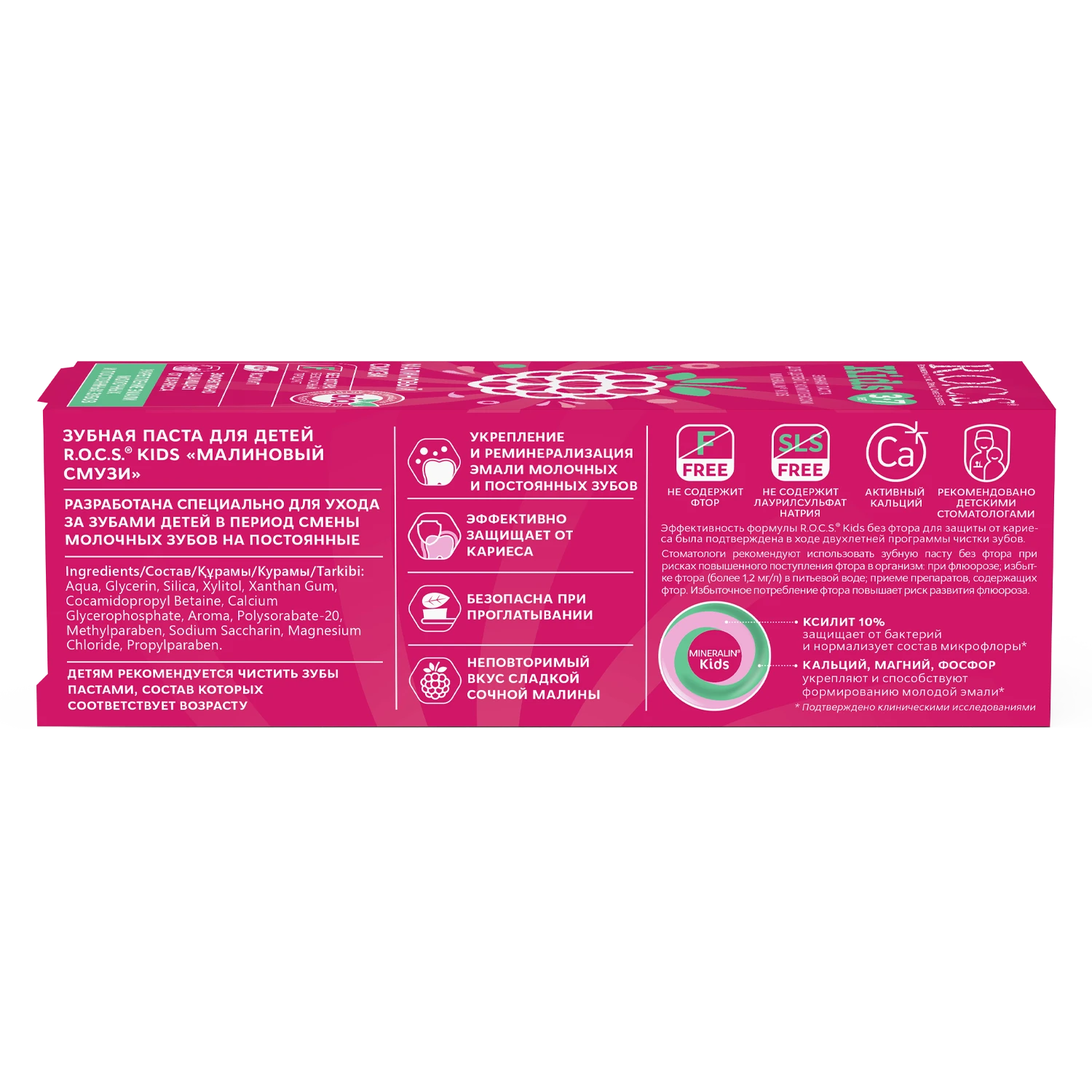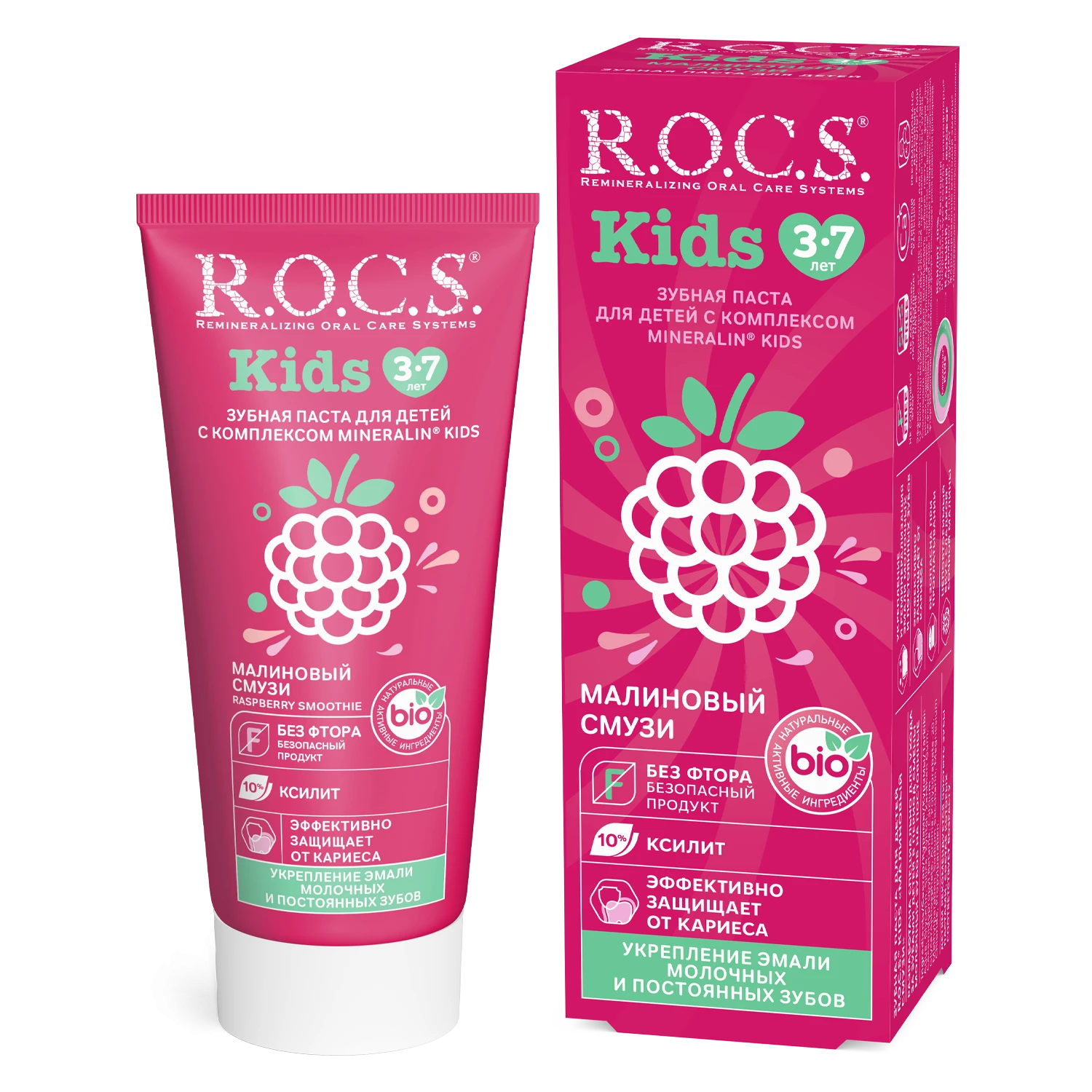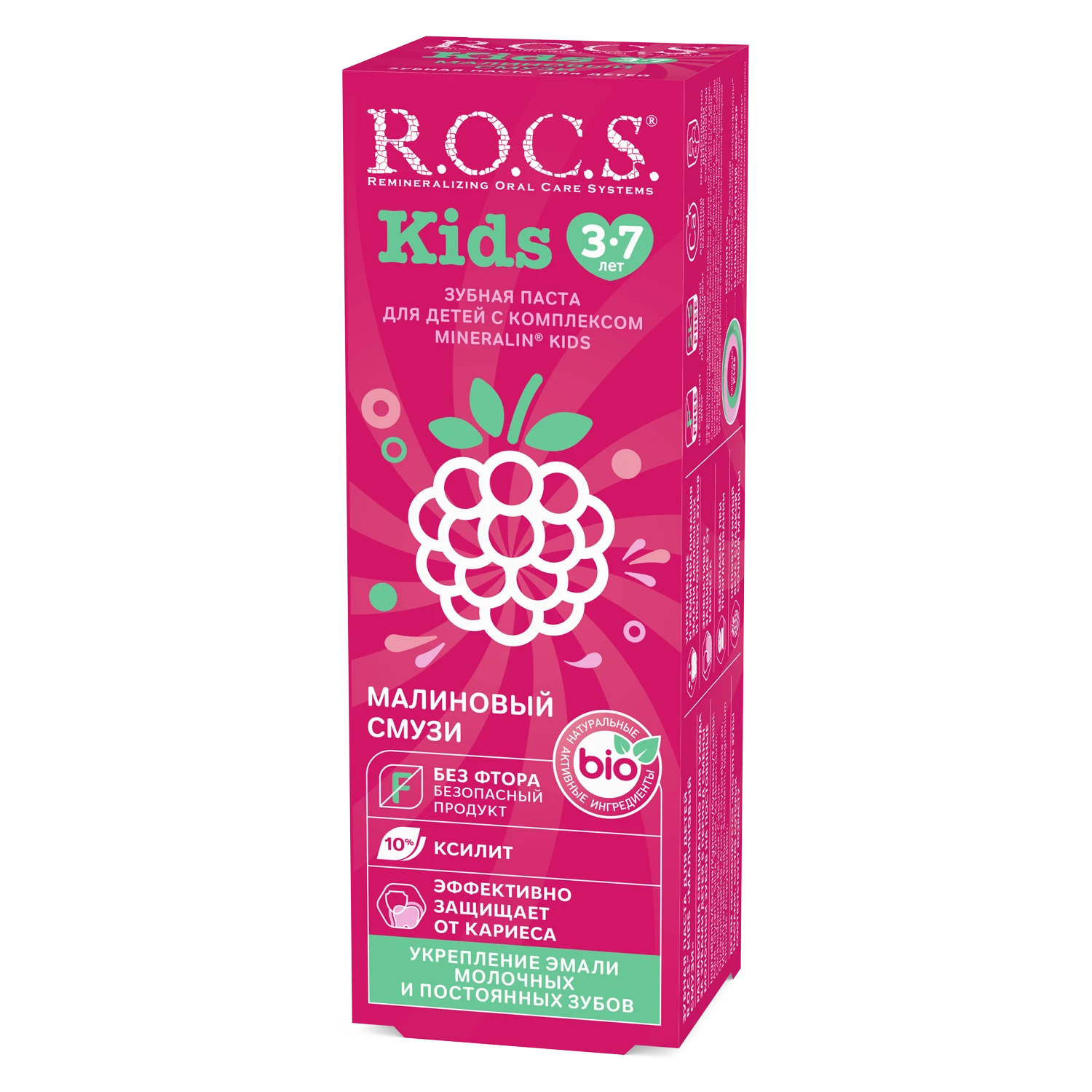 - Рекомендуем использовать совместно с зубной щеткой R.O.C.S. Kids для детей от 3 до 7 лет.