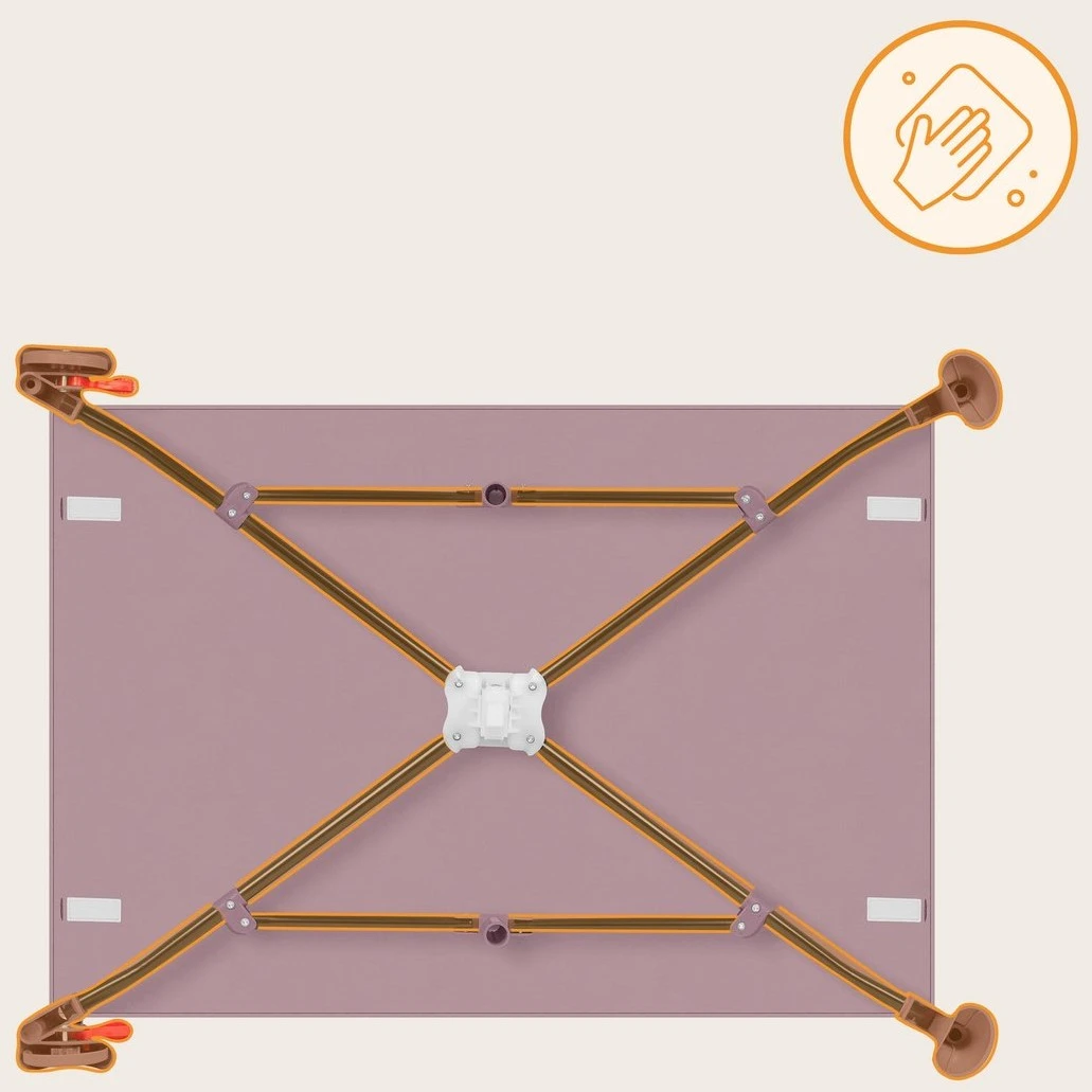 Стабильность кроватки и манежа обеспечивается прочной (но лёгкой) стальной конструкцией. Обивка выполнена из прочного и водоотталкивающего материала Oxford 300D.