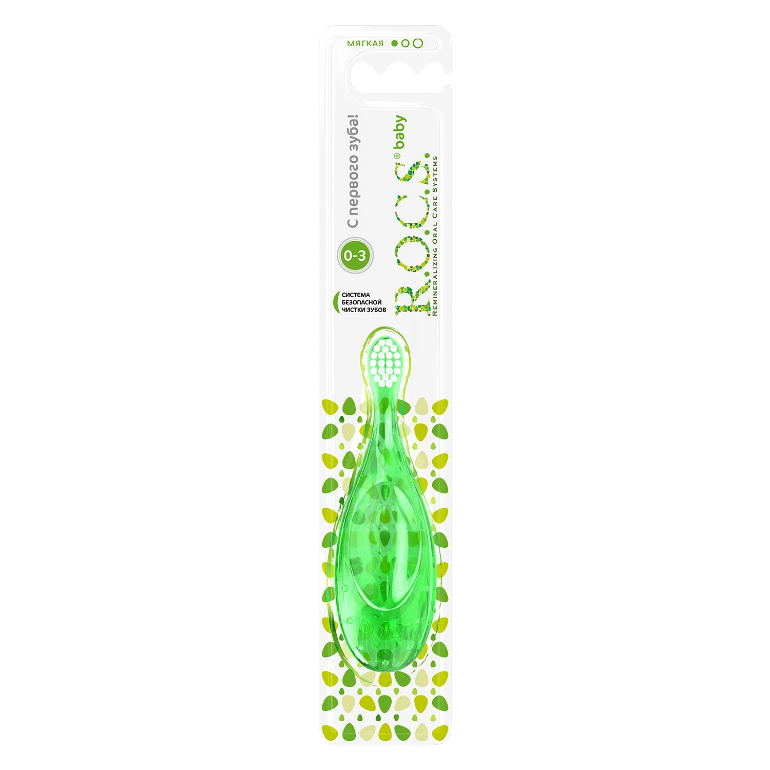 Зубная щетка R.O.C.S. Baby — отличное решение для ежедневной гигиены полости рта малышей от 0 до 3 лет. Экстрамягкая щетина с уникальной технологией тройной полировки кончиков исключает возможность повреждения твердых тканей или десен.