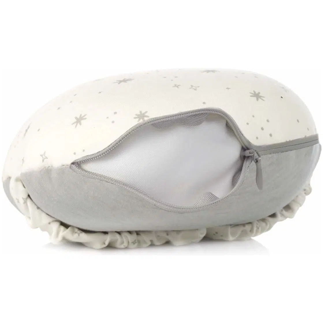 Имеет эргономичную форму для комфортного грудного вскармливания, а наполнитель из микрогранул позволяет ей лучше адаптироваться к любому положению.