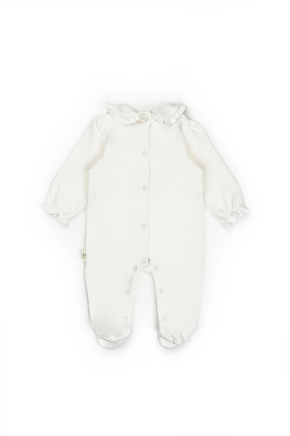 Очаровательный комбинезон для малышей с встроенными ножками, идеальный для комфортного и полного образа. Модель украшена рисунком ленточек, рюшами на рукавах и воротнике, застежка – кнопки сзади. В комплект входит шапочка с таким же рисунком для полного и гармоничного образа.
