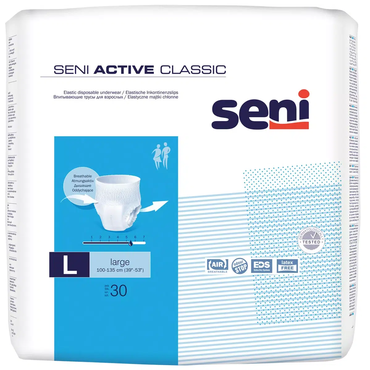 Дышащие трусы Seni Active Classic для людей с умеренным и тяжелым недержанием мочи.