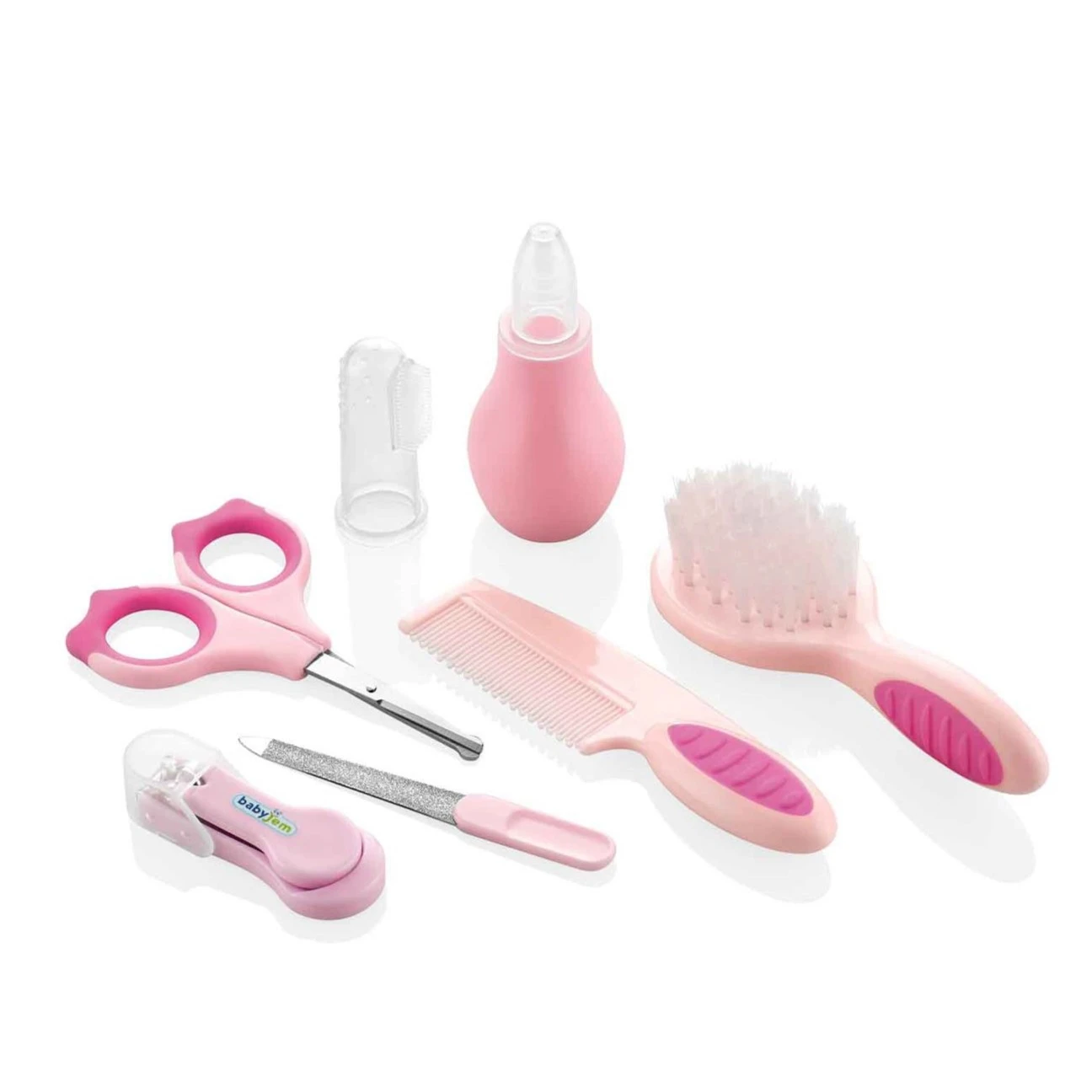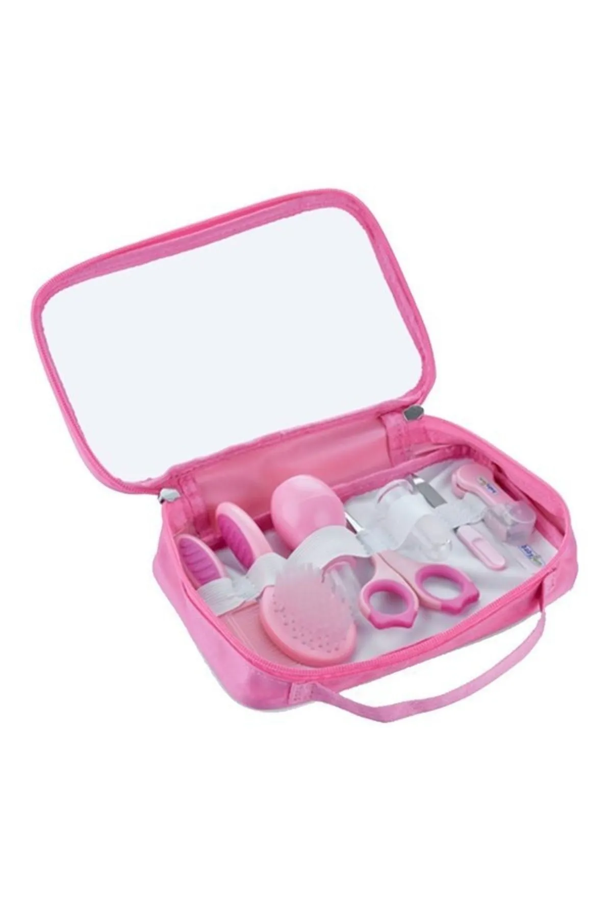 Этот комплект включает в себя мягкую насадку для носика, силиконовый напальчник для ухода за полостью рта малыша, ножнички и щипцы для ухода за ногтями. В комплект также входит расческа и щетка для ухода за волосами. Все эти элементы удобно упакованы в практичную сумочку. Сумочка имеет идеальные размеры для того, чтобы сопровождать вас в поездках и в любой ситуации, когда она может понадобиться.