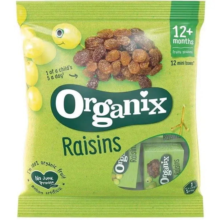 Сделайте перекус вкусным и полезным с Organix Raisins Mini Boxes — органическим изюмом, сладким и мягким, специально отобранным для детей. Будь то в ланч-боксе или в дороге во время ежедневных приключений, этот перекус является вкусным и питательным выбором, способствующим ежедневной норме фруктов ребёнка.