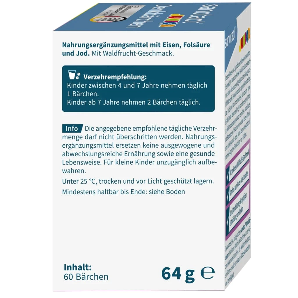 Sanotact® JUNIOR Brainy Bears предлагает подходящее сочетание для концентрации и способности к обучению. Это потому, что железо поддерживает нормальное когнитивное развитие детей. Кроме того, в них содержатся йод и фолиевая кислота. Продукт был специально разработан для детей от 4 лет и старше. Милая форма медвежонка делает прием витаминов легким и веселым. С их вкусом лесных ягод, медвежата могут быть как сосаны, так и жеваны. Удобная упаковка в баночке также облегчает их прием в пути, в путешествиях или на школьных экскурсиях.