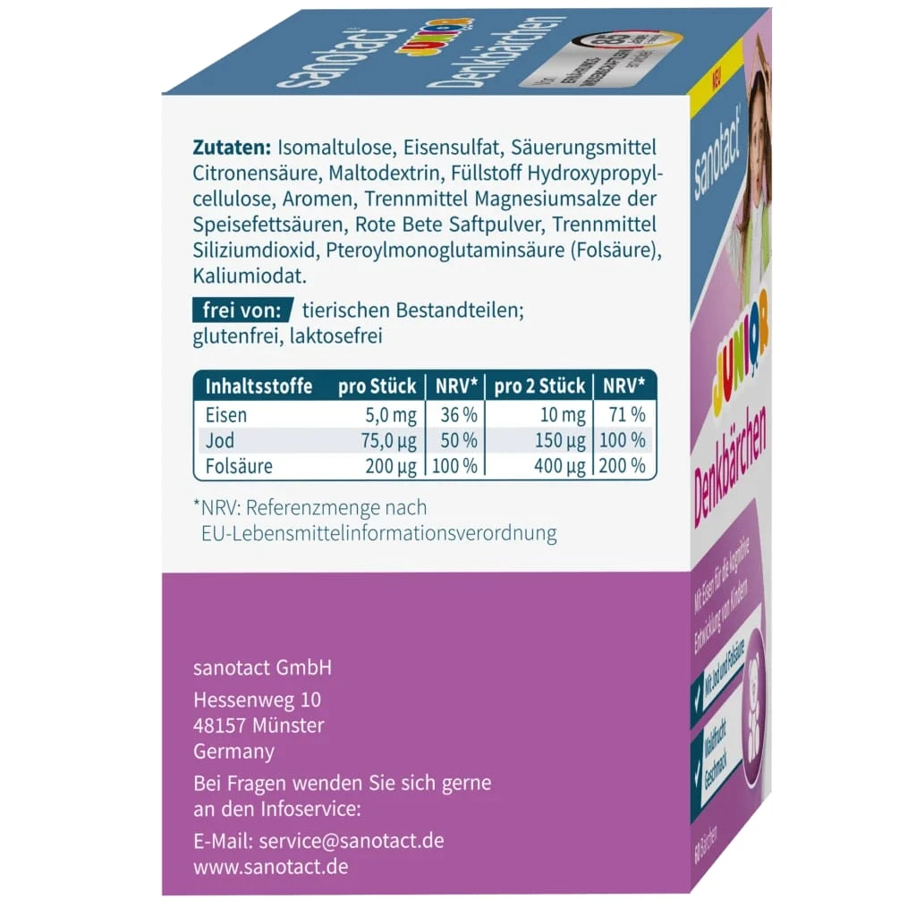 sanotact® JUNIOR Brainy Bears для умных детей с железом для поддержки умственного развития.